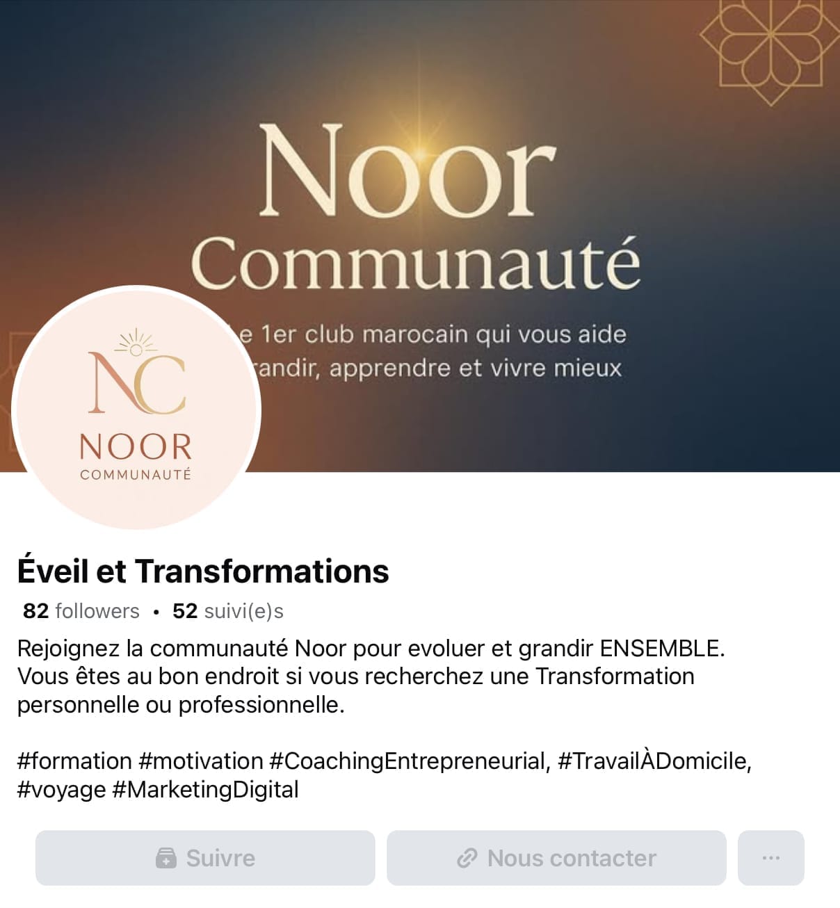 Noor Communauté c’est aussi un groupe privé avec plein d’infos sur les divers événements et offres exclusives que nous vous proposons.